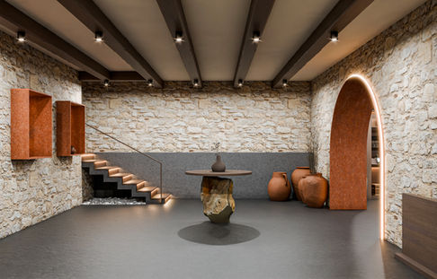 Through the subtle interplay of materials stone, wood, corten, and cement mortar Oinos becomes a space of memory, taste, and sensory experience, where the old and the new coexist in quiet harmony.