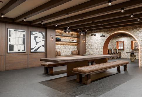 The name Oinos derived from the ancient Greek word for “wine” reflects both the function and the character of this private project. Located within a private residence, the Oinos Private Cellar reinterprets the original use of the basement, once dedicated to wine storage and tasting, and transforms it into a contemporary space that celebrates material authenticity and timeless atmosphere.